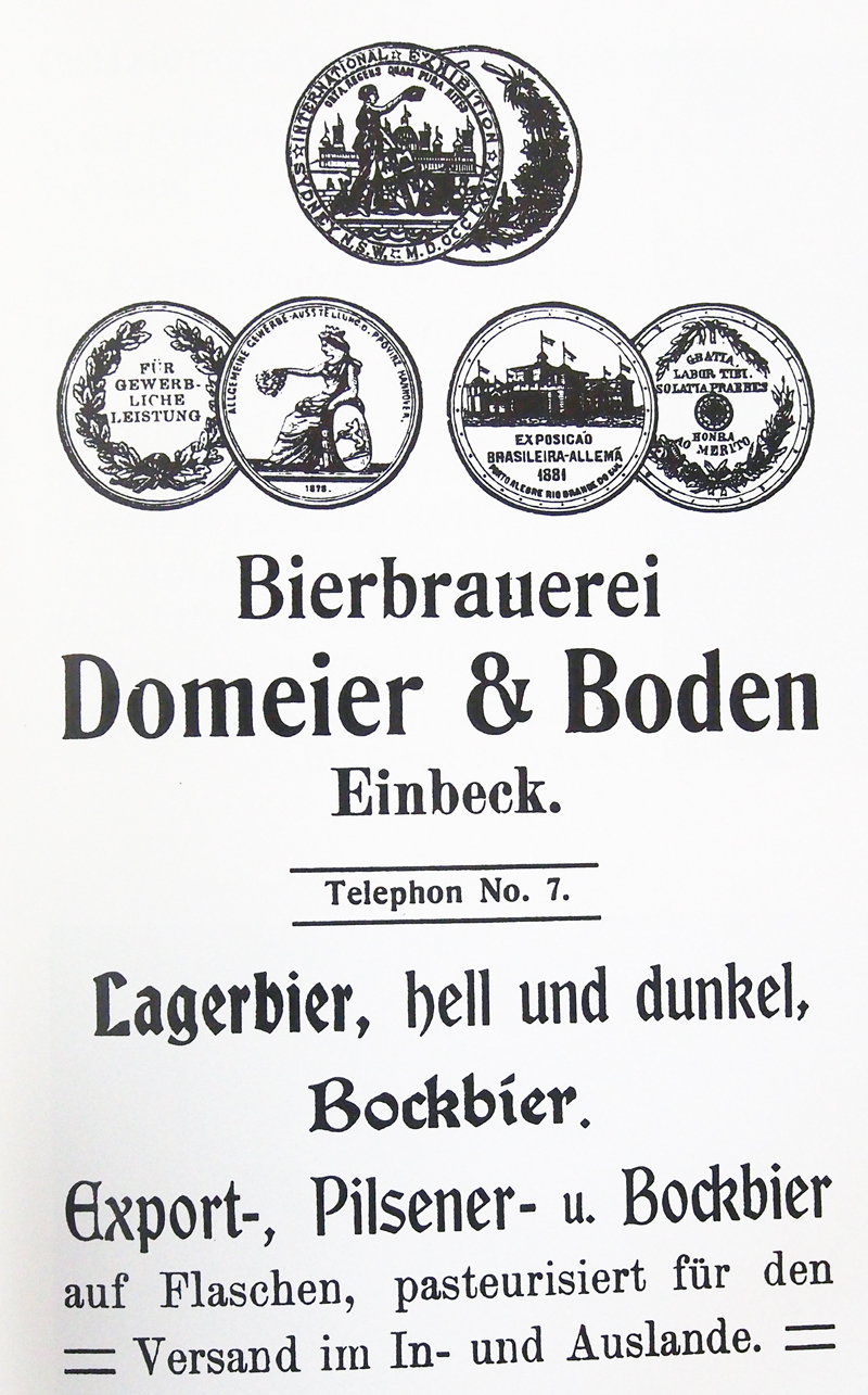 Hermann Domeier war der Kaufmann in dem neuen Unternehmen, Friedrich Boden der Techniker. An Pfingsten 1873 schenkten sie beim Nachbarschaftsfest erstmals das Bier dieser Brauerei aus. Chronisten berichten, dass der Gerstensaft großen Beifall fand. Die Brauerei Domeier & Boden war es auch, die noch vor der Städtischen Dampfbierbrauerei mit der Pasteurisierung des Bieres große Erfolge erzielen konnte. Durch das kurzzeitige Erhitzen, 1864 vom französischen Chemiker Louis Pasteur entwickelt, wurde das Bier haltbarer und konnte über Kontinente transportiert werden. Anfängliche Mängel des Verfahrens hat Friedrich Boden durch sinnreiche Verbesserungen des Apparates beseitigt; er konnte mehrere Patente für die Bier-Herstellung anmelden. Bis Brasilien und Australien gelangte das Einbecker Bier. In Sydney wurde dem Gerstensaft von Domeier & Boden 1879 eine Auszeichnung bei der dortigen Gewerbeausstellung verliehen.