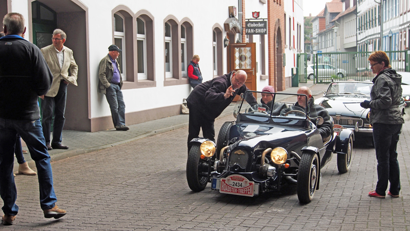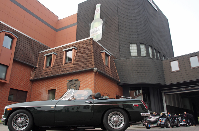 In diesem Jahr startete das Roadster-Treffen auf dem Einbecker Brauereihof, das konnte gut die noch verhältnismäßig junge Verbindung der Braumanufaktur Härke zur Einbecker Brauhaus AG unterstreichen, die Peiner sind Tochtergesellschaft. Ab ging’s für die Roadster mit den ersten Prüfungen durch die Verladehalle zum nahen PS-Speicher in Einbeck. Dort konnten die 52 teilnehmenden Fahrzeuge auf dem nahen Parkplatz der BBS parken und die Fahrer und Mitfahrer eine Führung durch die Erlebnisausstellung der Mobilität genießen. Dann folgte die Fahrt der tollen Kisten nach Peine, wo die Roadster schon sehnsüchtig auf dem Marktplatz zu letzten Prüfungen und der Siegerehrung erwartet wurden. Bei einer Prüfung beispielsweise galt es, eine Kugel geknüllt aus einer Zeitungsseite in einen Eimer zu werfen.