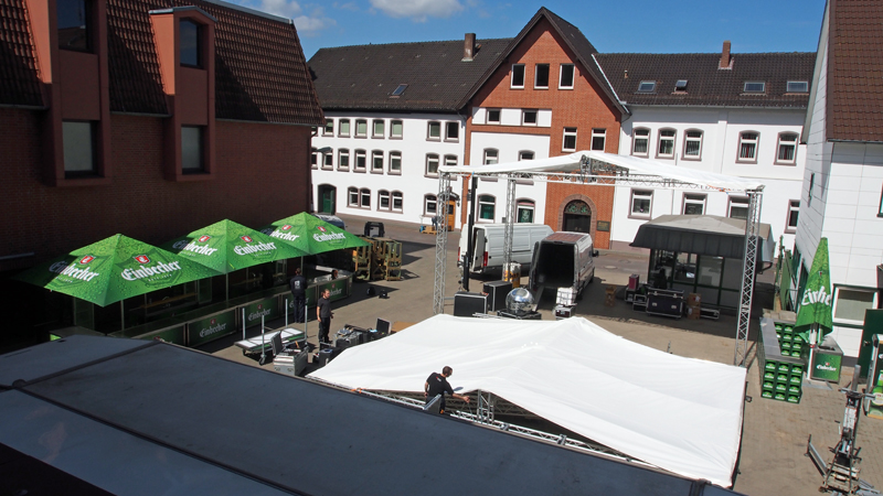 Es ist angerichtet, alles vorbereitet für eine große Bier-Party aus mehrfachem Anlass: Heute haben viele fleißige Hände auf dem Brauereihof kräftig gewerkelt, Bühnentraversen errrichtet, Theken aufgebaut, Trinkbecher bereit gestellt, Strom- und Wasserleitungen verlegt und vieles mehr erledigt, so dass morgen, am 23. April, das diesjährige und mittlerweile vierte Hoffest der Einbecker Brauhaus AG steigen kann – am Tag der Bieres, am 500. Geburtstag des Reinheitsgebotes. Die 15-Millionen-Investitionen in der Abfüllung und in der neuen Verladehalle werden von Niedersachsens Ministerpräsident Stephan Weil offiziell übergeben. Zuvor sticht er um 13 Uhr gemeinsam mit der neuen Landrätin Astrid Klinkert-Kittel ein Fass Mai-Ur-Bock und ein Fass Ainpöckisch Bier an. Mit Spannung warten Beobachter darauf, wie viele Hammerschläge beide benötigen werden – und ob jemand bierduschen muss. Vor dem Anstich schlängelt sich ab 12.30 Uhr ein kleiner Biertreck mit der wertvollen Gerstensaft-Fracht durch die Einbecker Innenstadt (hier ist die Route zu finden). Und nach dem ganzen offiziellen Feiern startet dann um 14 Uhr die größte Bier-Party des Jahres in Einbeck, musikalisch vielfältig begleitet bis in den späten Abend von mehreren Bands, die für alle Geschmäcker etwas bieten. Ganz spontan sind um 18.30 Uhr auch noch „Deep Öhler“, die Jungs aus Einbeck, mit ihrem neuen, heute erscheinenden EM-Song „Allez Jogi“ (Video-Trailer hier) dabei und auf der Bühne „högscht konzentriert“ zu leben – mehr geht schon fast nicht mehr, denn Brauereibesichtigungen sind am Sonnabend ebenso möglich, der Fan-Shop ist geöffnet. Der Eintritt ist übrigens frei.