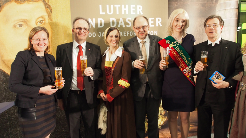 Es war des Reformators Lieblingsbier, das Einbecker. „Den besten Trank, den einer kennt…“ Dieser Ausspruch von Martin Luther vor 500 Jahren ist bis heute bekannt. Und so war es naheliegend, wenngleich auch eine große Ehre, dass das Einbecker Brauhaus AG beim Parlamentarischen Abend des Deutschen Brauer-Bundes in Berlin der exklusive Bierpartner war, als es galt, das Reformationsjubiläum zusammen mit Evangelischer Kirche und der Politik zu feiern. Der Deutsche Brauer-Bund hat bei einem Parlamentarischen Abend unter dem Titel „Luther und das Bier“ gemeinsam mit der Einbecker Brauhaus AG und der Evangelischen Kirche mit Vertretern aus Politik und Wirtschaft angestoßen. Bei einem Brauherren Pils oder einem „Ainpöckisch Bier 1378“, dem Lutherbier aus Einbeck, kamen rund 400 Besucher miteinander ins Gespräch. Mit dabei in der niedersächsischen Landesvertretung in Berlin waren auch mehrere Vertreter aus Einbeck, an der Spitze Brauhaus-Vorstand Martin Deutsch und Bürgermeisterin Dr. Sabine Michalek. Aus der Politik wurden die Bundestagsvizepräsidenten Claudia Roth (Grüne) und Johannes Singhammer (CSU), die heimischen Bundestagsabgeordneten Dr. Wilhelm Priesmeier (SPD) und Dr. Roy Kühne (CDU) gesichtet. Unter den Gästen waren auch zwei leibhaftige Bierköniginnen: Christina Burgstaller aus der Hallertau und Sabine-Anna Ullrich aus Franken, die noch bis Juni als siebte Bayerische Bierkönigin amtiert.