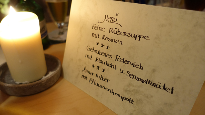 Bevor Gralle las, hatten die Besucher der Veranstaltung alle einen Comic auf ihrem Schoß. Denn Thomas Dahms stellte sein „Zu Tisch bei Luthers in Wittenberg“ vor, und der Verleger und Autor des Ostfalia-Verlages zeigte sehr praktisch, dass auch Lesungen aus einem Comic sehr gut möglich sind. Bei dem gezeichneten Bilderbuch über Luthers kann man übrigens nebenbei eine Menge lernen. Auch im Comic kommt selbstverständlich Einbeck und sein Bier vor, schließlich war es leckere Gabe bei der Luther-Hochzeit. Nach so viel literarischen Genüssen konnten sich die Gäste an kulinarischen laben. Das Team des Brodhauses um Conny Schlöter kredenzte ein Drei-Gang-Menü und hatte selbstredend die korrespondierenden Einbecker Biere im Ausschank. Mit der passenden Lektüre konnten sich die Besucher schließlich am Büchertisch von Buchhändlerin Gudrun Buschold (Einbecker Literaturhaus) versorgen. Wirklich schade wäre es, wenn es bei dieser einen literarisch-kulinarischen Kombination bliebe, ähnliche Veranstaltungen sind gut denkbar: Beispielsweise gibt es ja auch Einbeck-Krimis, die ebenfalls ihre Szenen im Brodhaus haben. Und dass der eigene Einbeck-Comic überfällig ist, dürfte spätestens an dem Abend im Brodhaus auch jedem klar geworden sein.