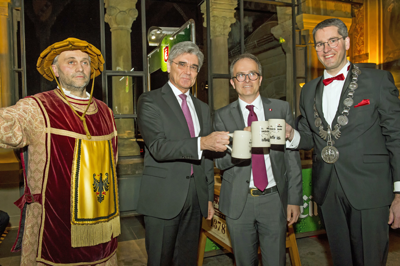 Das Goslarsche Pancket gehört neben der Bremer Schaffer-Mahlzeit und dem Matthaei-Mahl in Hamburg zu den bekanntesten Festmahlen in Norddeutschland, die an eine mittelalterliche Tradition und die Zeiten der Hanse anknüpfen. Glanzpunkt des Abends ist der mittelalterliche Schmaus, zubereitet nach Originalrezepten eines der ältesten in Deutschland erschienenen Kochbücher aus dem Jahr 1587. Bei der 40. Veranstaltung seit 1967 war jetzt Siemens-Vorstandschef Joe Kaeser als Festredner zu Gast in Goslar, vor zwei Jahren war es der damalige Bahn-Chef Rüdiger Grube, der das Fass Einbecker Bier anstach. Seit jeher wird beim Goslarschen Pancket Ainpöckisch Bier gereicht, das naturtrübe Bockbier, gebraut nach mittelalterlicher Rezeptur, unfiltriert und hopfenbetont. Ausgeschänkt wurde das Ainpöckisch Bier, das es sonst nur als Flaschenbier gibt, auch heuer wieder exklusiv als Fassbier in besonderen Tonkrügen mit dem Wahrzeichen der Stadt Goslar, der Kaiserpfalz. Die Wenigsten wissen, dass die frühere städtische Brauerei in Goslar 1918 von der Einbecker Brauerei übernommen und seit 1945 von Einbeck aus verwaltet wurde. „Die Region Goslar ist Einbeck nicht zuletzt durch das Einbecker Bier eng verbunden“, sagt Brauhaus-Vorstand Martin Deutsch, der mit dem Siemens-Chef und dem Oberbürgermeister das erste Fass traditionell anstach.