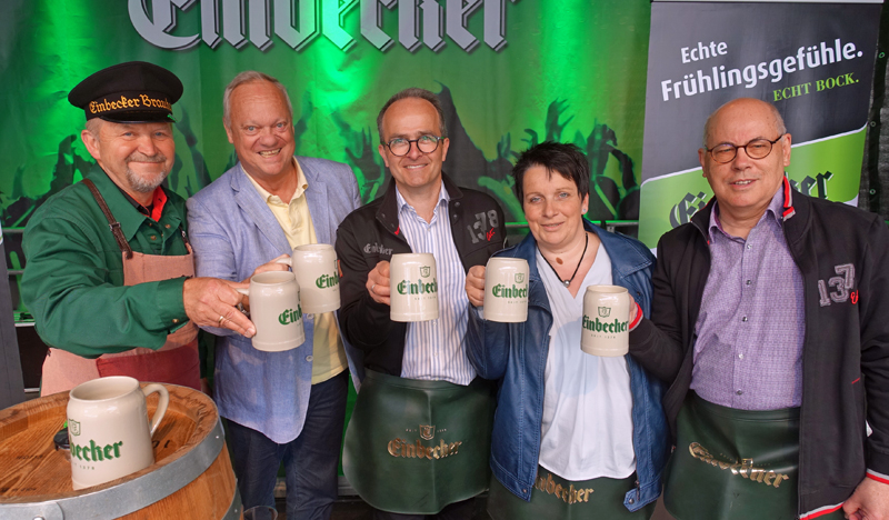 „O’zapft is!“ in diesem Jahr exakt am Tag der ersten belegten Bierrechnung von 1378, vor 640 Jahren also. Mit dem Einbecker Hoffest startet das Brauhaus die Hochphase für das Mai-Urbock, das Premium-Produkt aus der Heimat guter Biere. Dafür gibt’s optimales Bierwetter beim sechsten Hoffest neuer Zeitrechnung auf dem Einbecker Brauereigelände an der Papenstraße. Vorstandssprecher Lothar Gauß lobte das süffige Saisonprodukt, es schmecke wieder ein bisschen besser als im Vorjahr. Und mahnte die vor der Bühne versammelten zahlreichen Besucher unmissverständlich, dass der hochprozentige Mai-Urbock ein Genussgetränk ist. Nichts für den zu extensiven Konsum.