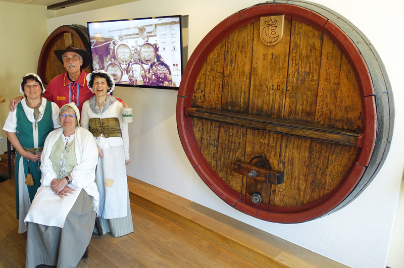 Neben dem neuen Bildschirm hängen im Brodhaus-Saal zwei Holzfassböden an der Wand, jeweils 200 Kilo schwer und von heimischen Handwerkern mit viel Kraft in das obere Stockwerk getragen, bedankt sich Ulrich Meiser vom Einbecker Brauhaus für den tatkräftigen Einsatz. Im Holz noch erkennbar sind die Liter-Zahlen. Das Brodhaus, das älteste Wirtshaus Niedersachsens, nennt den Saal im Obergeschoss jetzt „Schalander“. In der Sprache der Brauer ist das der Ort, an dem sich die Brauknechte seit alters her mal hinsetzen und entspannen konnten, erläutert Brodhaus-Chefin Conny Schlöter. Auch die drei Fässer, in denen die Brodhaus-Gäste in der Braudiele sitzen, essen und trinken können, haben jetzt Namen statt Nummern. „Brauherren“, „Ainpöckisch“ und „Ur-Bock“ heißen die Fässer. Das Brodhaus-Team hat sich vorgenommen, das Bier noch sensorisch intensiver erlebbar für die Gäste zu machen. Dazu gehören kulinarische Zutaten wie eine Einbecker Biervesper zum Bier ebenso wie die „Bierhochzeit“, ein traditionelles, geselliges Event, das Besucher (männlich wie weibliche) feiern können – neun Monate nach der Hochzeit, wenn die Frau noch nicht schwanger ist.