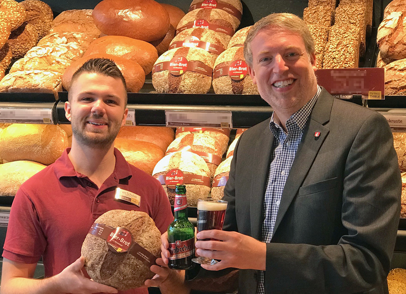 Ein Brot, gebacken mit Winterbock aus Einbeck, das gibt’s jetzt in den Filialen der Feinbäckerei Thiele. „Eine perfekte Zutat zur Verfeinerung des echten Brotgeschmacks“, sind sich der Marketingleiter der Einbecker Brauhaus AG, Ingo Schrader, und Thiele-Filialleiter Hendrik Schulze einig. Das exklusive Bier-Brot sei ein wahrer Genuss, und zwar nicht nur für Bierliebhaber, heißt es in einer Presseinformation. Handwerkliche Kreativität in Südniedersachsen habe das dunkle, malzige Einbecker Winter-Bockbier mit bestem Mehl aus der Region vereint zu einem saftigen aromatischen Bier-Brot. Die Feinbäckerei Thiele feiert in diesem Jahr ihr 140-jähriges Bestehen. Die neue Brotsorte ist nicht die erste mit Einbecker Bier, jedoch die einzige erhältliche.