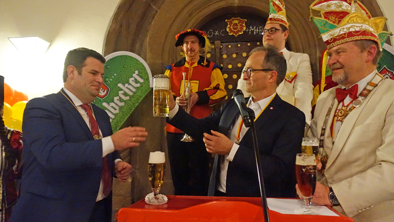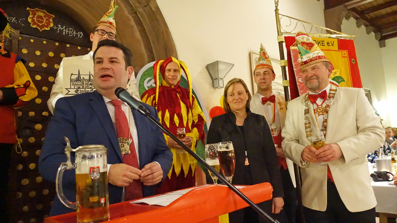 Tief dankbar zeigte sich Hubertus Heil für die Ordensauszeichnung. Bei anderen Bierorden-Trägern habe er sich kundig gemacht, wenige Stunden vor der Verleihung erst noch bei Gerhard Glogowski, dem einstigen Ministerpräsidenten aus Braunschweig. „Das ist eine große Ehre“, habe der gesagt. Neugierig habe er ihn gefragt, wie das denn werde und so ablaufe bei der Verleihungsfeier. „Nüchtern betrachtet ’ne ordentliche Veranstaltung, hat viel Spaß gemacht, jedenfalls der Teil, an den ich mich erinnern kann…“ Der Einbecker Bierorden wurde auch in diesem Jahr vor Gästen aus Politik und Wirtschaft mit karnevalistischem Zeremoniell und Programm im vollbesetzten historischen Rathaussaal der Stadt Einbeck verliehen.