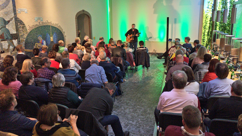 Die Resonanz war riesig, auch die zusätzlich herbei geschafften Stühle genügten am Ende nicht, um allen Besuchern einen Sitzplatz geben zu können. Mehr als 80 waren es, weitere genossen im Stehen die volle Folk-Premiere. Beim Kultur- und Kunstfestival StadtpARTie Einbeck war das Sudhaus der Brauerei Schauplatz eines Konzertes, auch hier hat ein Stuhl mit kleiner Regenbogen-Flagge am Eingang den Gästen den Weg zum Veranstaltungsort gewiesen. Dort, wo sonst bei Brauereibesichtigungen die für das Bier notwendigen Rohstoffe (Hopfen, Malz) vorgestellt werden und neuerdings auch probiert werden können, und wo der neue Präsentationsfilm üblicherweise auf der Großbildleinwand läuft, griff jetzt Paddy Schmidt vor den Sudhauskesseln zur Gitarre und zu seiner Mundharmonika. Der Frontmann der Band „Paddy goes to Holyhead“ begeisterte mit seinem Gespür für die irische Musik und mit seiner rauen Stimme. Zwischendurch konnten die Besucher natürlich das eine oder andere Bier trinken und den Abend genießen, für den die Organisatoren eine rundum gelungene Bilanz zogen.