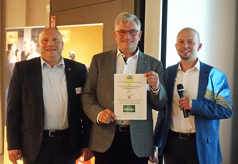 In die Heimatstadt des Bockbieres kamen am langen Einheitswochenende gut 100 Teilnehmer des Jahrestreffens der renommierten Gesellschaft für Geschichte des Brauwesens (GGB). Der 1913 in Berlin gegründete Verein mit heute rund 300 Mitgliedern kümmert sich satzungsgemäß um die Jahrtausende alte Geschichte des Bieres und seiner Rohstoffe, die Entwicklung der Bierherstellung, des Brauhandwerks und der Brautechnologie hin zur Brauwissenschaft. Er fördert die Forschung regionaler und lokaler Brauereigeschichte, hält in Berlin eine exzellente Bibliothek mit historischen Beständen bereit. In Einbeck trafen sich Mitglieder aus der Brauwirtschaft (Brauereien, Mälzereien, Zulieferbetriebe), aber auch aus der Geschichtsforschung, Archäologie, Biologie, Ethnologie sowie Sammler von Brauereigegenständen oder brauhistorisch interessierte Bierfans. Im Urbockkeller der Einbecker Brauhaus AG, die Mitglied des Vereins ist und das Treffen nicht zum ersten Mal veranstaltete, konnte Brauhaus-Exportchef Ulrich Meiser unter anderem auch den „Bierpapst“, den bekannten Bierjournalisten Conrad Seidl aus Wien begrüßen. Die 100 Teilnehmer kamen aus Deutschland, aber auch aus Dänemark, der Schweiz oder Österreich in die Heimat guter Biere, um sich auszutauschen.