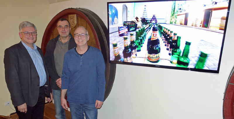 Sie verwandeln die Grüße aus dem Einbecker Brauhaus zu den diesjährigen Festtagen in Töne und Bilder: Ulf de Boer und Thomas Schlüter haben das Video produziert, in dem der Weihnachtssong „Jingle Bells“ von einer durchs Sudhaus fahrenden Modelleisenbahn auf mehr oder weniger gefüllten Bierflaschen angeschlagen wird. Als die beiden Männer aus Greene und Kreiensen von Vorstand Martin Deutsch und Betriebsratschef Knut Schiemann gefragt wurden und ein aus Japan stammendes Video mit der Grundidee sahen, gingen sie gleich voller Elan ans Werk und ließen ihre Kreativität spielen. Die beiden gelernten Schlosser kannten das Video aus dem Jahr 2017, in dem der Posaunenchor Holtensen-Hullersen das Lied „Vom Himmel hoch, da komm ich her“ blies. Nun galt es, mit einer Modelleisenbahn so an unterschiedlich gefüllten Bierflaschen vorbei zu fahren, dass mit dem Anschlagen der Glasflaschen in den unterschiedlichen Tonhöhen die weihnachtliche Melodie entsteht. Insgesamt rund 70 Stunden Arbeit stecken in dem Projekt, bei dem beiden Tüftler einige Hürden zu überwinden hatten: Wie schnell darf der Zug fahren? Dürfen die Flaschen auf den Waggons voll sein? Wann werden sie zu schwer? Wie bekommt man den Klöppel an die Flasche? Letztlich haben Ulf de Boer und Thomas Schlüter eine Bierflasche durchbohrt, um die Klöppel an den Federn zu befestigen. „Wir hatten viel Spaß“, berichten die beiden Einbecker-Fans. Auch die Videoaufnahme, gefilmt mit einer GoPro-Actionkamera, gelang natürlich nicht gleich bei der ersten Einstellung. Mal lief jemand durchs Bild, mal fehlte der Dampf aus dem Schornstein der Lokomotive. Am Ende aller Mühen stand die Aufnahme, die jetzt auf der Website der Einbecker Brauhaus AG auf dem Youtube-Kanal der Brauerei online ist. In den Tagen bis Weihnachten werden außerdem alle Mails, die im Brauhaus verschickt werden, in der Signatur einen Link zu dem Video enthalten. Die ersten Fans haben das Video schon einmal vorab sehen dürfen, Ulf de Boer und Thomas Schlüter haben viel Respekt geerntet. „Dafür hat sich’s schon gelohnt“, lächeln beide zufrieden.