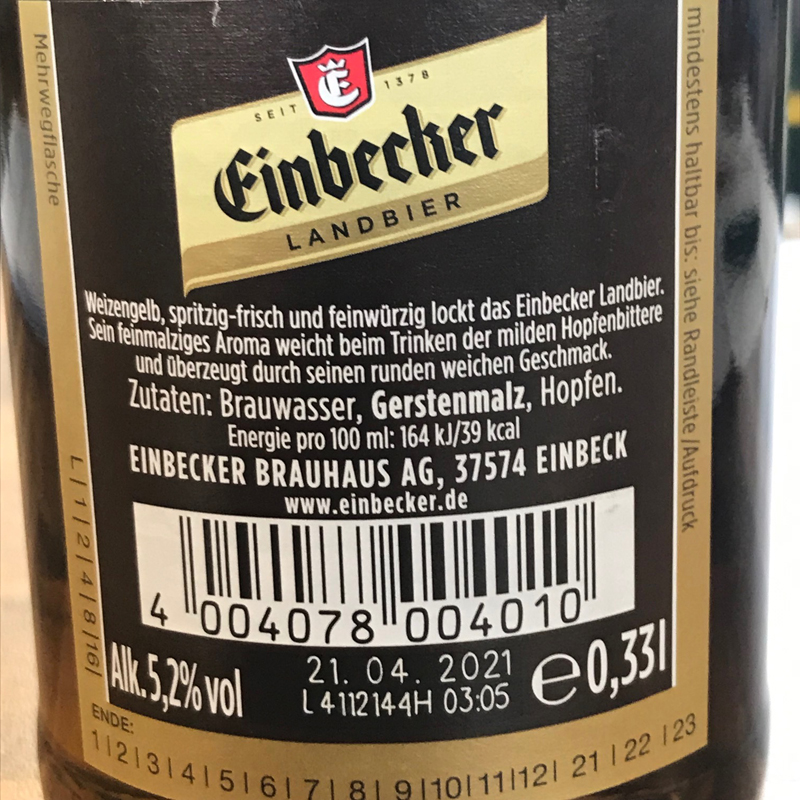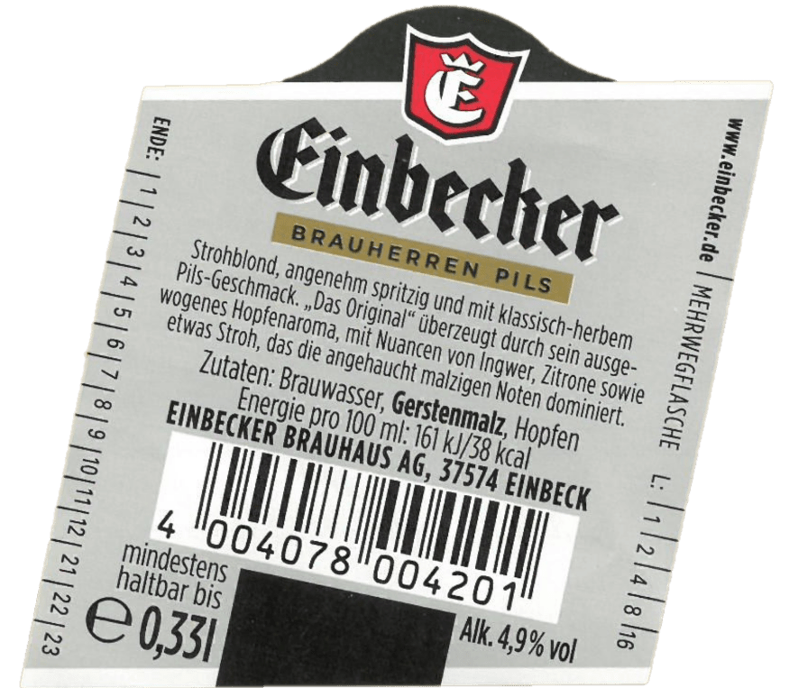 Im September vergangenen Jahres hat der Dachverband der europäischen Brauer, die „Brewers of Europe“, der EU-Kommission eine Selbstverpflichtung zur freiwilligen Kennzeichnung von Bieren und Biermischgetränken vorgelegt. Nach dieser sollen bis zum Jahr 2022 europaweit alle in Flaschen oder Dosen verpackten Biere mit Kalorienangaben versehen werden. „Dieser Aktion haben wir uns angeschlossen“, erklärt Brauhaus-Sprecher Ulrich Meiser. „Wir setzen auf volle Transparenz.“ Und so werden nun auch bei allen Biersorten der Einbecker die Brennwert-Angaben auf dem Etikett zu finden sein.