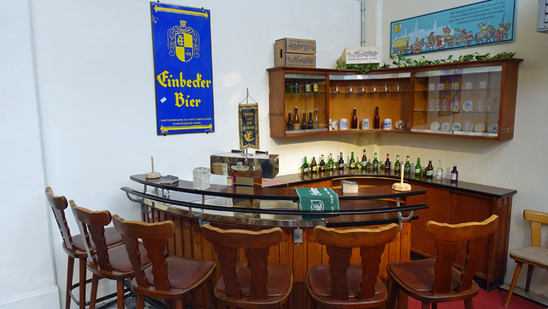 Die Kneipe „Zur Stadt Einbeck“ in der Benser Straße ist vielen Einbecker noch gut bekannt. Lange Jahre lang betrieb Inge Schneider das Traditionshaus. Als die Kneipe geschlossen werden musste, wäre das Mobiliar um ein Haar entsorgt worden, wenn Rainer Koch dieses Stückchen Stadt- und Gastronomiegeschichte nicht gerettet hätte. Auf Vermittlung von Martin Deutsch vom Brauhaus schließlich kam die Einrichtung in das Besucherzentrum und dient den dort wartenden Gästen als Sitzecke. In einem weiteren Schritt soll die Zapfanlage wieder in Betrieb genommen werden, so dass dort bei Veranstaltungen auch einmal ein kühles Bier gezapft werden kann. Einbecker versteht sich.