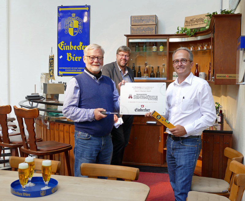 Nostalgie der besonderen Art im neuen Besucherzentrum des PS-Depots für Kleinwagen am Altendorfer Tor in Einbeck: Nicht nur Oldtimer aus Blech und Chrom sind dort zu finden, sondern auch eine alte Gaststätten-Einrichtung mit Kultcharakter. Von Rainer Koch stammt als Dauerleihgabe die Einrichtung des Gasthauses „Zur Stadt Einbeck“, das Inge Schneider früher in der Benser Straße betrieben hatte. Ursprünglich sollten Tresen und Stammtisch im Besucherzentrum der Einbecker Senfmühle eine neue Heimat finden, doch dort haben sich die Pläne geändert. Jetzt können Besucher des Kleinwagen-Depots vor ihrem Besuch kurz auf dem Barhocker Platz nehmen, der schon so manchen Kneipengast beim Einbecker Bier gesehen hat.