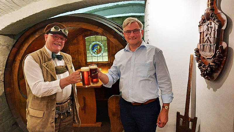 Hoher Besuch im Einbecker Brauhaus: „Bierpapst“ Conrad Seidl war jetzt für Dreharbeiten in Einbeck unterwegs und dabei selbstverständlich auch in der Brauerei zu Gast. Der Österreicher produziert zurzeit eine neue, zweite Staffel seiner Reihe „Beer-tastic!“, die wahrscheinlich ab Frühjahr 2021 in Streamingdiensten zu sehen sein wird. Eine der 26-minütigen Folgen, komplett auf Englisch gedreht, wird dabei in der Heimat des Bockbieres spielen. Bier und Kunst ist das übergreifende Thema der Filme, Braukultur spielt dabei eine wichtige Rolle. Produziert wird die Staffel von „Magic Entertainment“ von Cornelia und Christian Machacek. In Einbeck unterwegs war Conrad Seidl mit Stadtführerin Marion Bartels, die als Dreh-Scout so manche unbekannte Plätze zeigen konnte. Im Stadtmuseum informierte sich der „Bierpapst“ unter anderem über das älteste Bierfass Deutschlands und erhielt Informationen von Museumspädagogin Dr. Imke Weichert. Für eine Szene kam auch der PS-Speicher ins Spiel, in dem Seidl mit einem Twin-Mercedes fahren durfte und dabei dachte, er würde wohl nach einem Bockbier doppelt sehen, hat das Fahrzeug doch zwei Motorhauben in entgegen gesetzte Richtungen. Im Urbockkeller der Brauerei stand dann schließlich eine Bockbier-Verkostung an. Der „Bierpapst“ testete sämtliche Bockbier-Sorten der Einbecker und hatte dabei sichtlich Spaß.