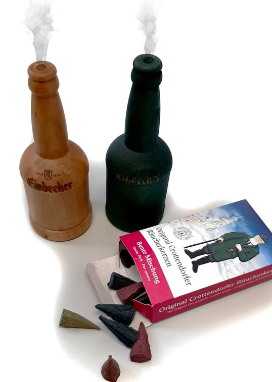 Da rauchen die Flaschen, in die Räucherkerzen passen: Mit den Räucherflaschen zieht vorweihnachtlicher Duft in die Stuben.
