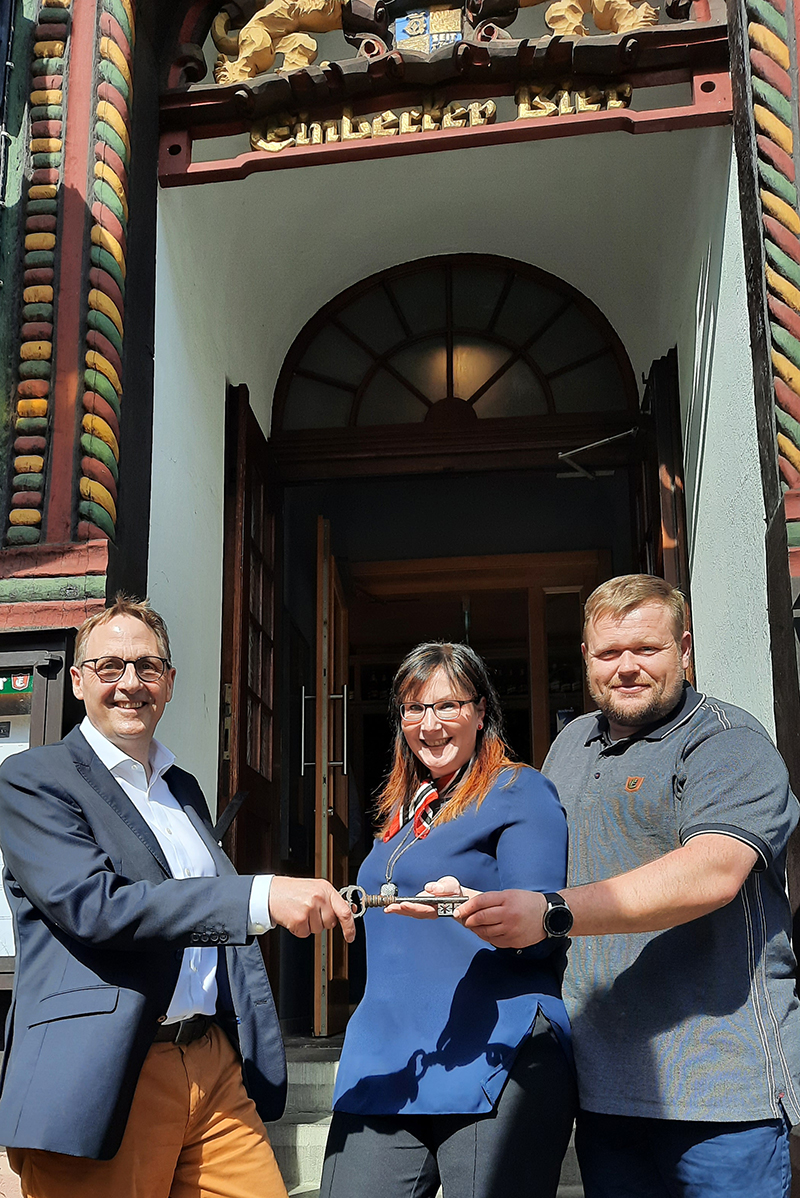 Im ältesten Wirtshaus Niedersachsens haben heute Aneka und Sven Falke als neue Pächter die Regie übernommen. „Wir freuen uns, dass wir jetzt hier durchstarten können“, sagt Aneka Falke. Das Paar sorgt für frischen Wind im Brodhaus, ohne die mehr als 600 Jahre währende Tradition der Gaststätte am Marktplatz zu vergessen. Für die Eigentümerin des Brodhauses, das ist seit exakt 50 Jahren die Einbecker Brauhaus AG, überreichte Gastronomie-Leiter Thorsten Eikenberg den symbolischen Schlüssel. „Wir haben die gemalten Betreiber gefunden“, sagt er zur Idealbesetzung der neuen Pächter.