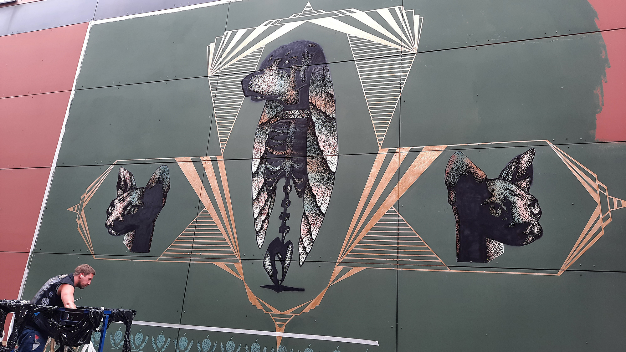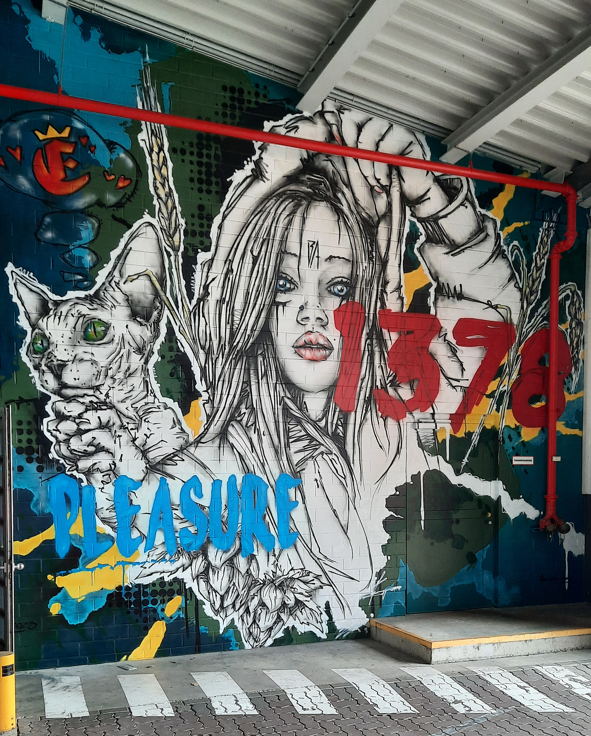 Leere Wandflächen gibt es auf dem Areal des Brauhauses genügend. Trotz des Jahrzehnts, in dem Street Art in Einbeck bereits eine Rolle spielt und dabei auch das Bier an verschiedenen Stellen schon sichtbar wurde (zum Beispiel Herzog Erich am Bürgermeisterwall), waren im Unternehmen jedoch Mut und Vertrauen notwendig, fünf großflächige Wände auf dem Gelände der Einbecker Brauhaus AG den Künstlern zur Verfügung zu stellen. Denn nicht alle Entwürfe und Details habe man vorab gesehen, sagte Brauhaus-Marketingleiter Ingo Schrader. Als sich die Motive im Laufe des BAM-Wochenendes immer mehr herausbilden, ist er zufrieden. Das Risiko habe sich gelohnt. Einige Bilder regten zum Nachdenken an, sagte Schrader: Warum beispielsweise eine Katze auf der Eingangswand zur Verladehalle zu sehen ist? Die passt darauf auf, dass sich nicht zu viele Mäuse im Getreide aufhalten, erläutert Künstler „Black Ape“ (Oliver Schwan) aus Esdorf.